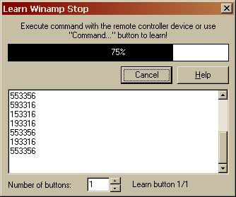 Als Letztes müssen sie nun noch dem Programm beibringen, die Signale der Fernbedienung richtig zu verstehen. Dazu klicken sie mit der rechten Maustaste auf die Funktion, die erlernt werden soll, und wählen im Kontextmenü Learn item ... Jetzt Müssen sie 20 mal die gewünschte Taste auf der Fernbedienung drücken. Das Programm, zeigt dabei das jeweils empfangene Signal an (siehe Bild). Alle unterschiedlichen Signale, die empfangen wurden, werden nun der Taste zugeordnet und lösen im folgenden die entsprechende Funktion aus. Auch das müssen sie für jede Taste machen, dann sollte alles laufen.